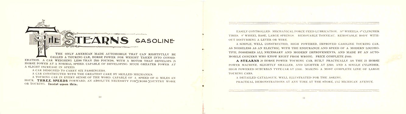 ca. 1903 CADILLAC AUTOMOBILE CO. THE CADILLAC RUNABOUT $750 WITH TOP $800 THE CADILLAC AUTOMOBILE COMPANY OF ILLINOIS Chicago, ILL 6.75″x3.75 folded pages 6 & 7