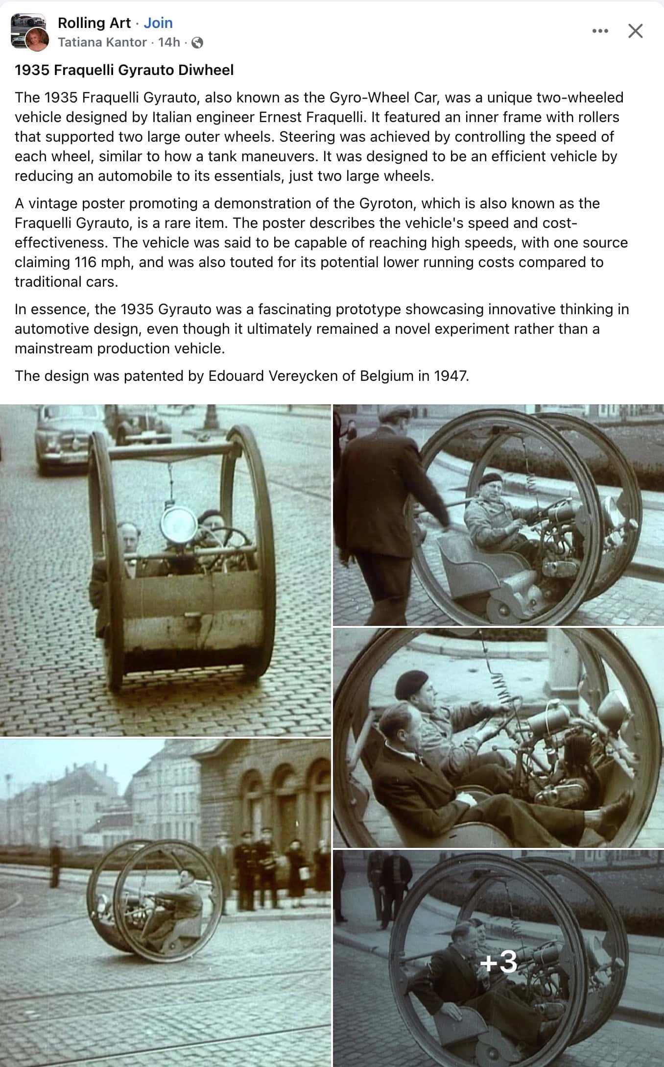 1935 FRAQUELLI Gyrauto Diwheel prototype FB