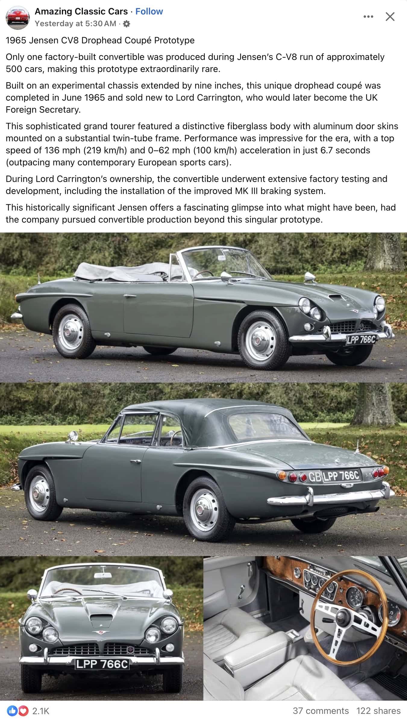 1965 JENSEN CV8 Drophead Coupe Prototype FB