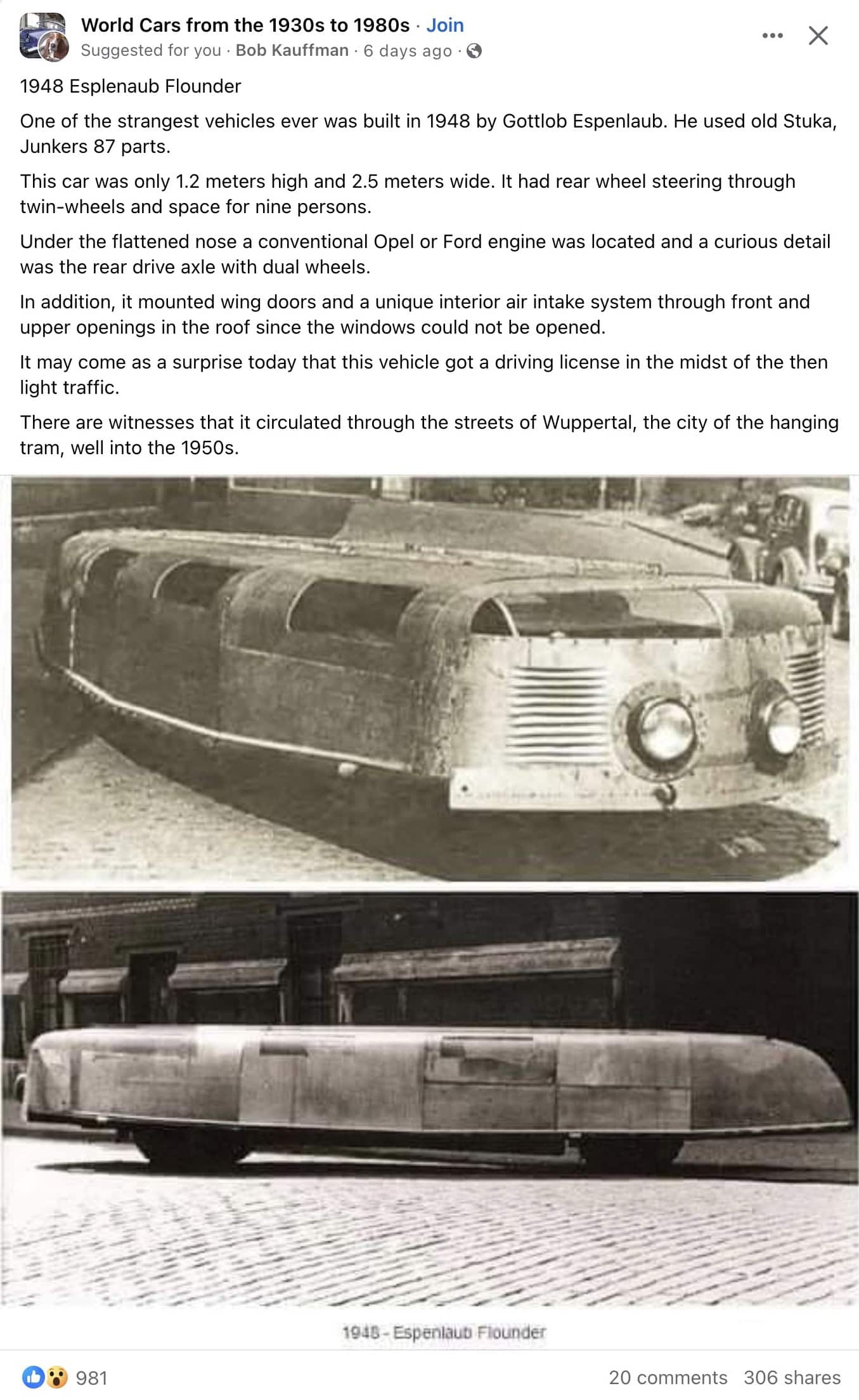 1939 SCHLORWAGEN 3-Wheeler concept FB