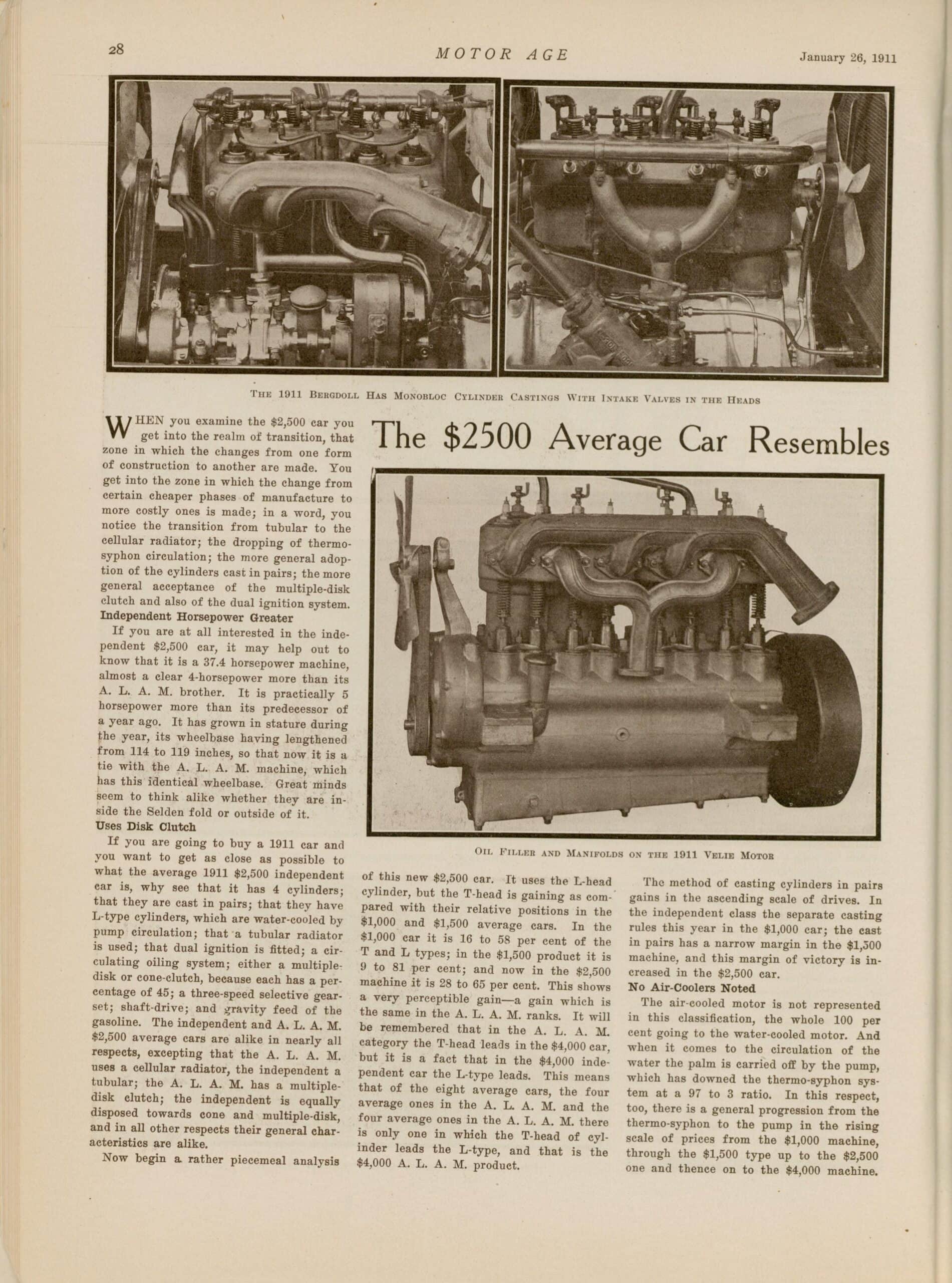 1911 1 26 Bergdoll engine photo The $2,500 Average Car Resembles MOTOR AGE page 28 AACA Library