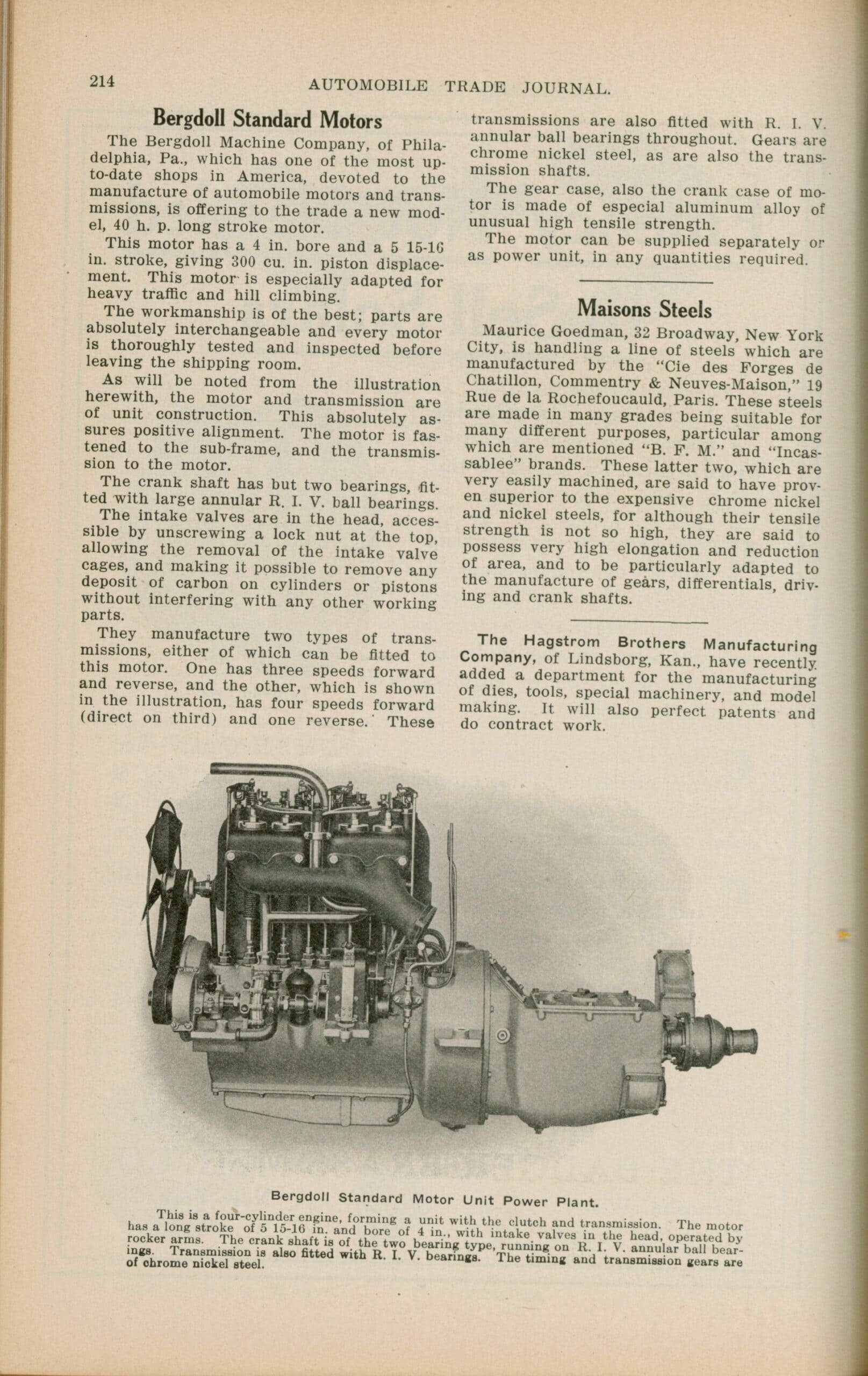 1912 5 1 Bergdoll Standard Motors engine photo article AUTOMOBILE TRADE JOURNAL page 214 AACA Library