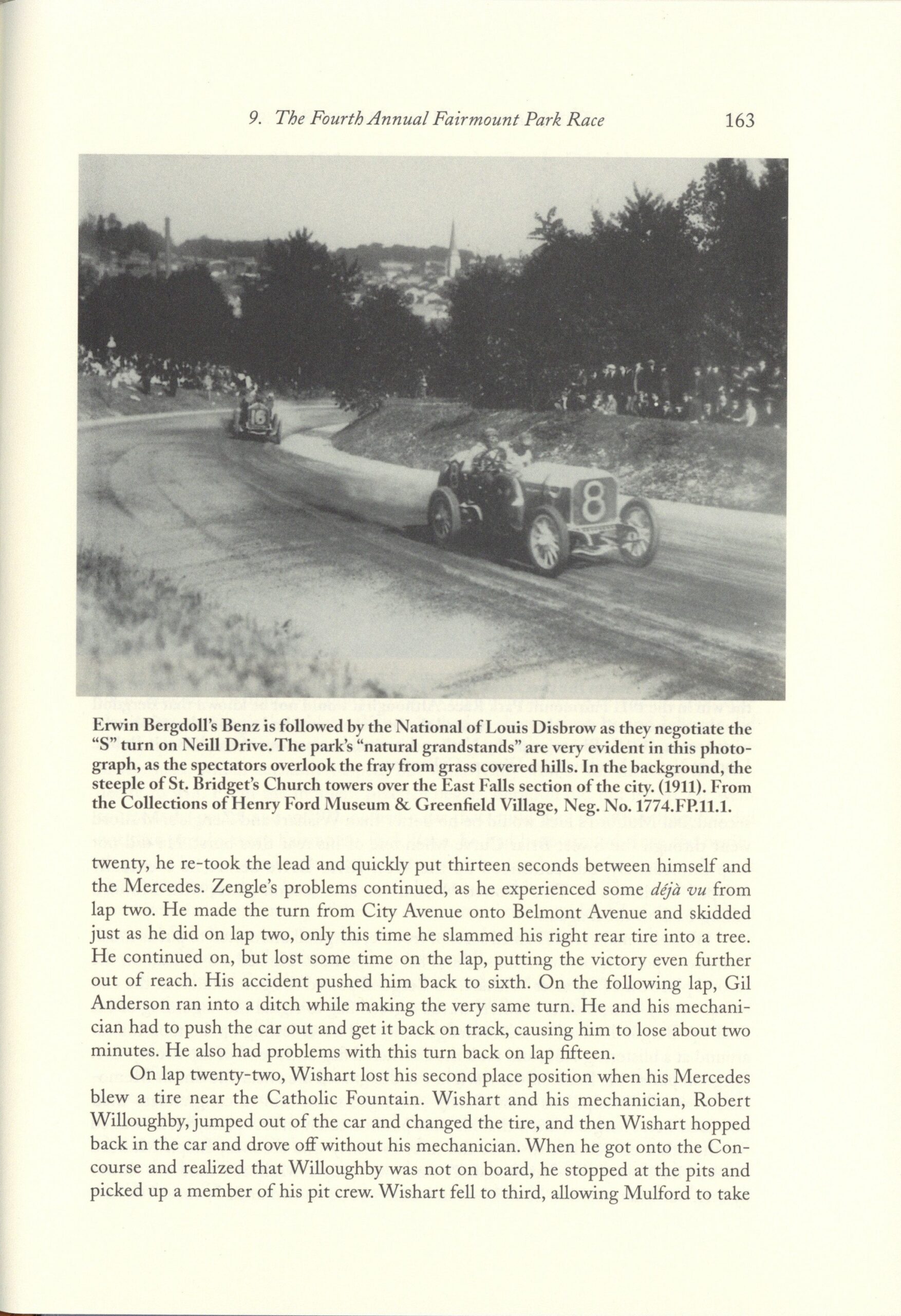 1911 Fairmount Park Races Erwin Bergdoll WINNER BENZ Car 8 THE FAIRMOUNT PARK MOTOR RACES 1908-1911 BY Michael J. Senega 7″×10″ page 166
