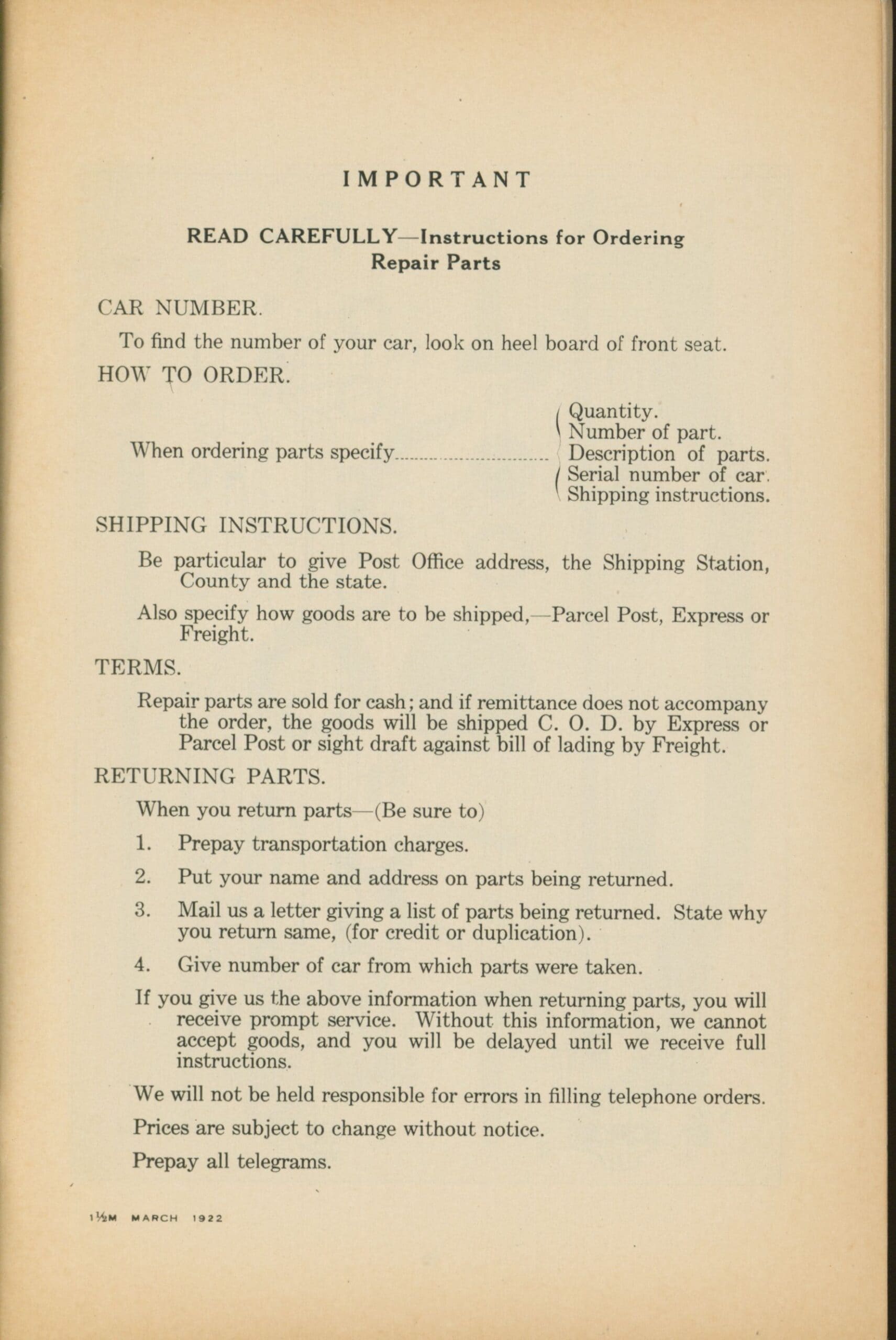1912 CASE AUTOMOBILE REPAIR Price List Models K-30, L-30, M-40 Inside front cover