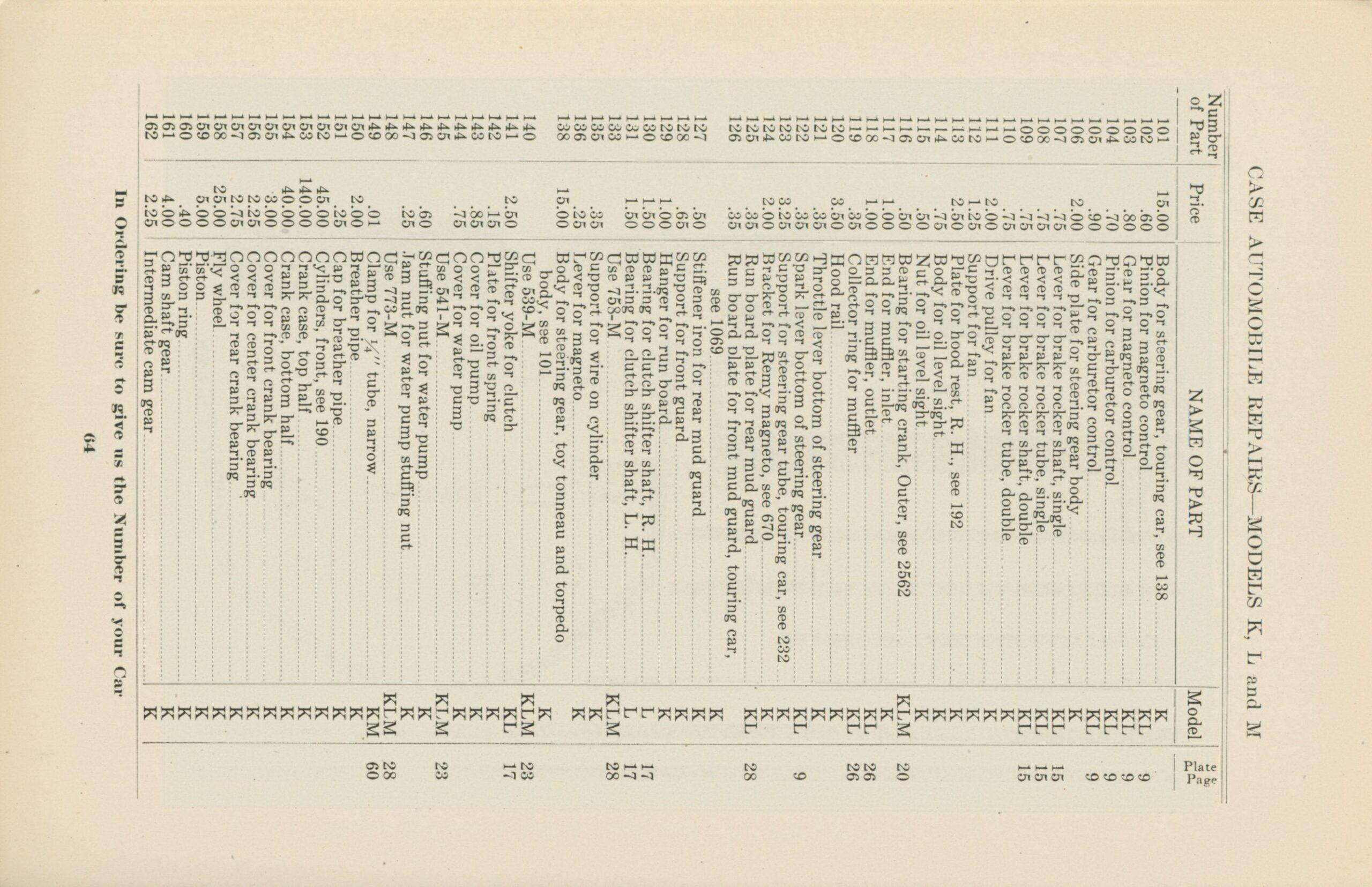 1912 CASE AUTOMOBILE REPAIR Price List Models K-30, L-30, M-40 page 64
