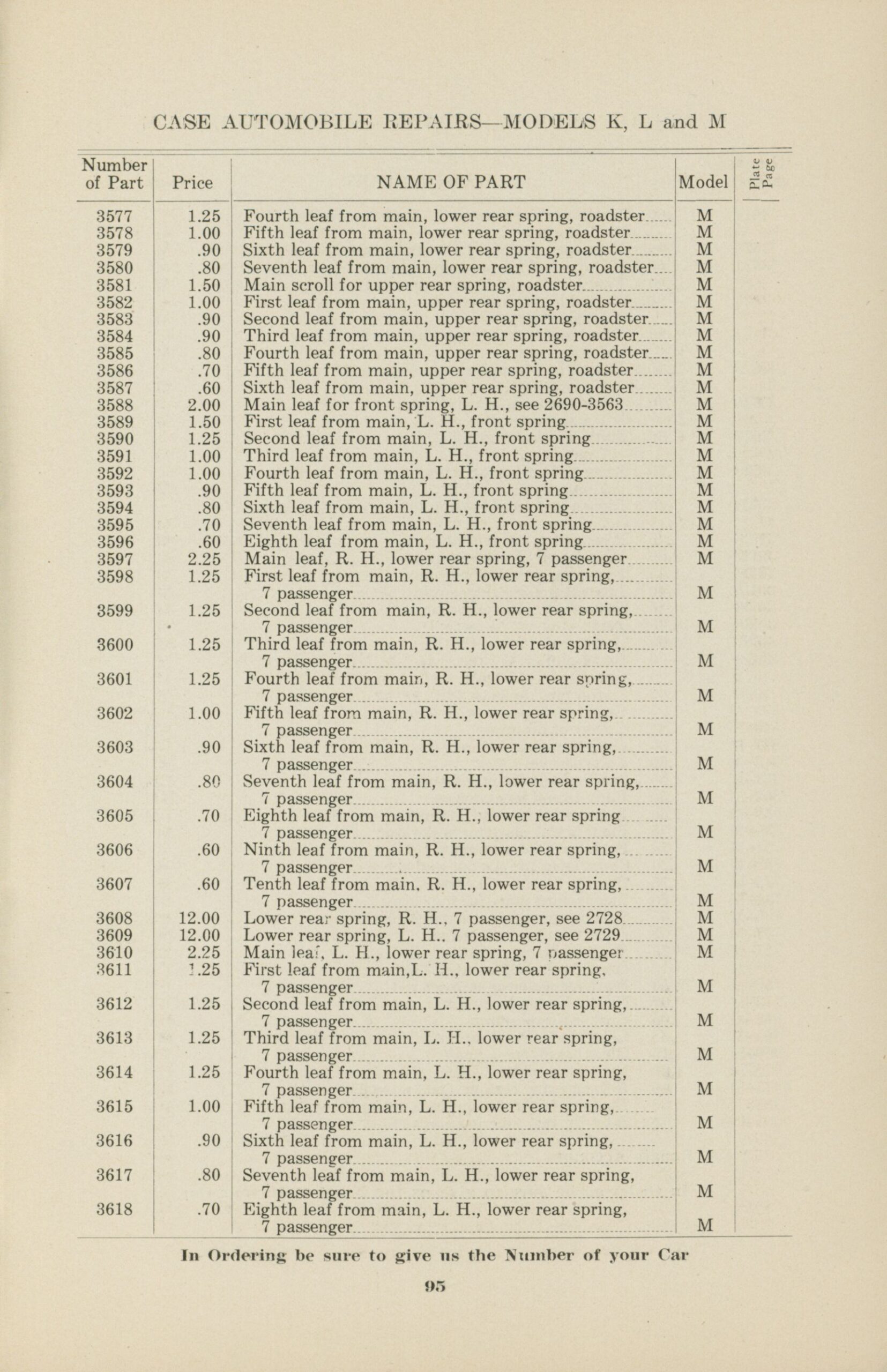 1912 CASE AUTOMOBILE REPAIR Price List Models K-30, L-30, M-40 page 95