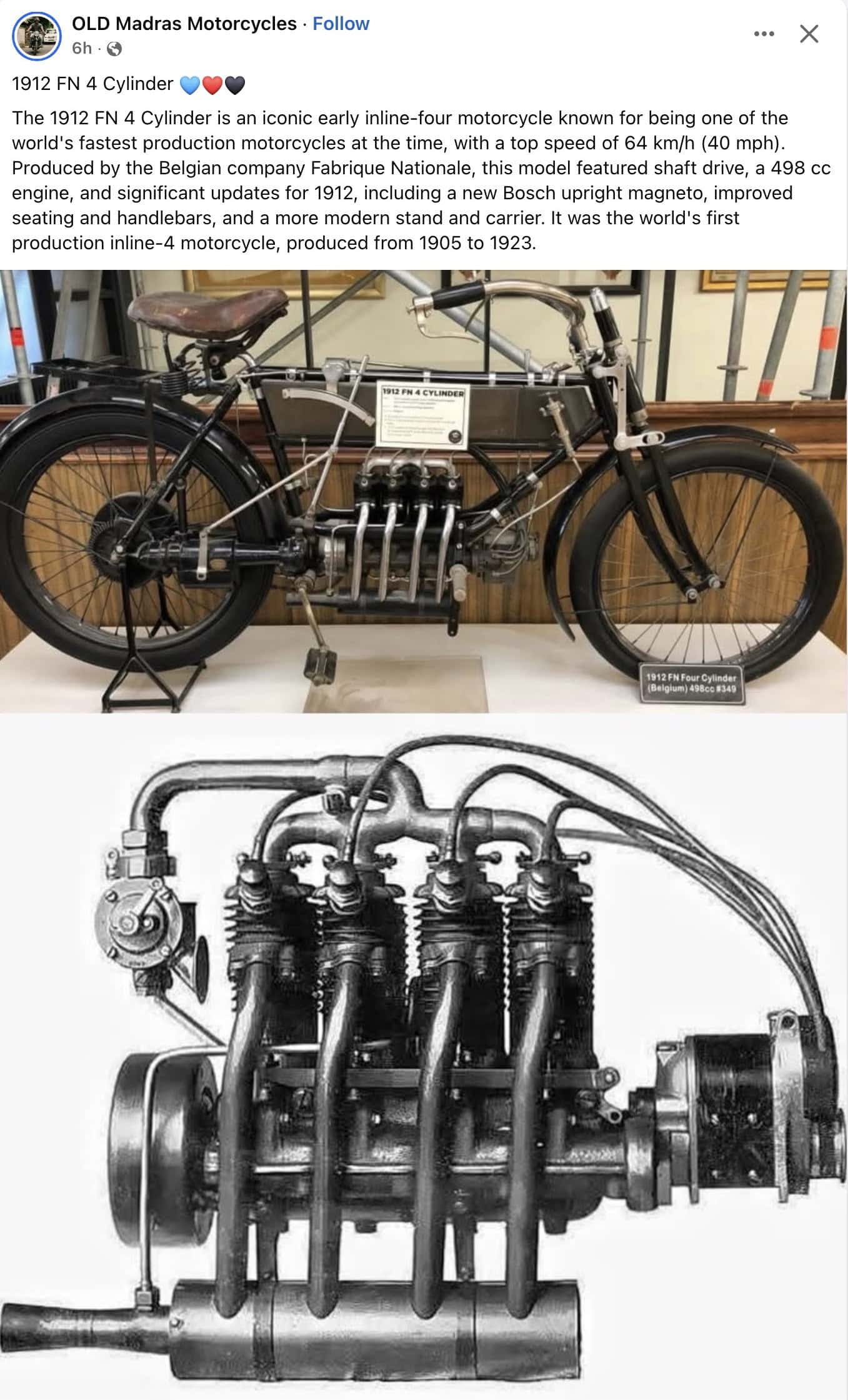 1912 FN 4 Cylinder motorcycle FB 2