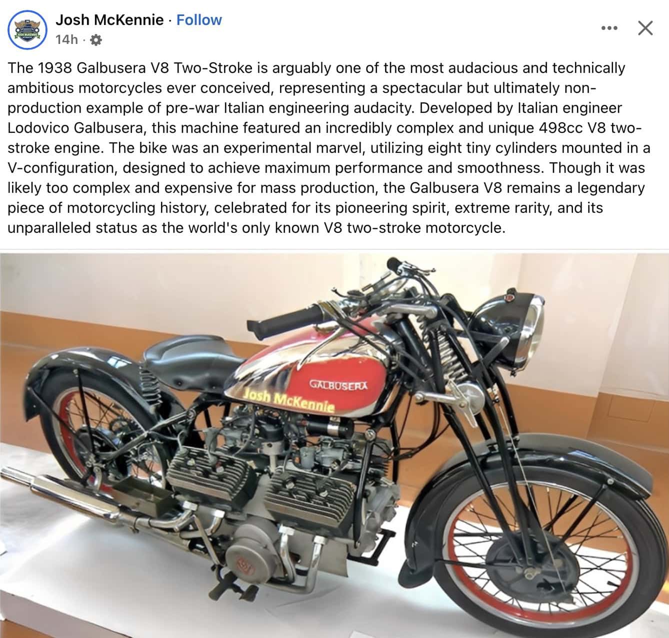 1938 GALBUSERA V-=8 Two-Stroke motorcycle FB