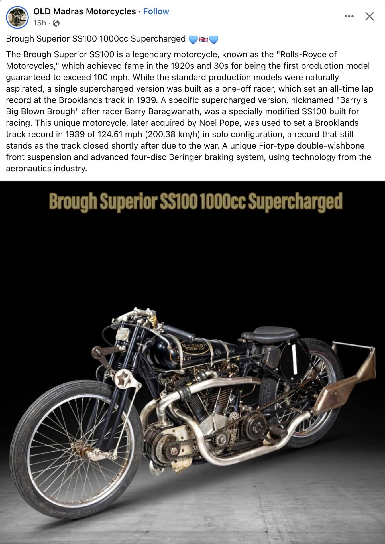 1939 ca. BROUGH SUPERIOR SS100 1000cc Supercharged motorcycle FB
