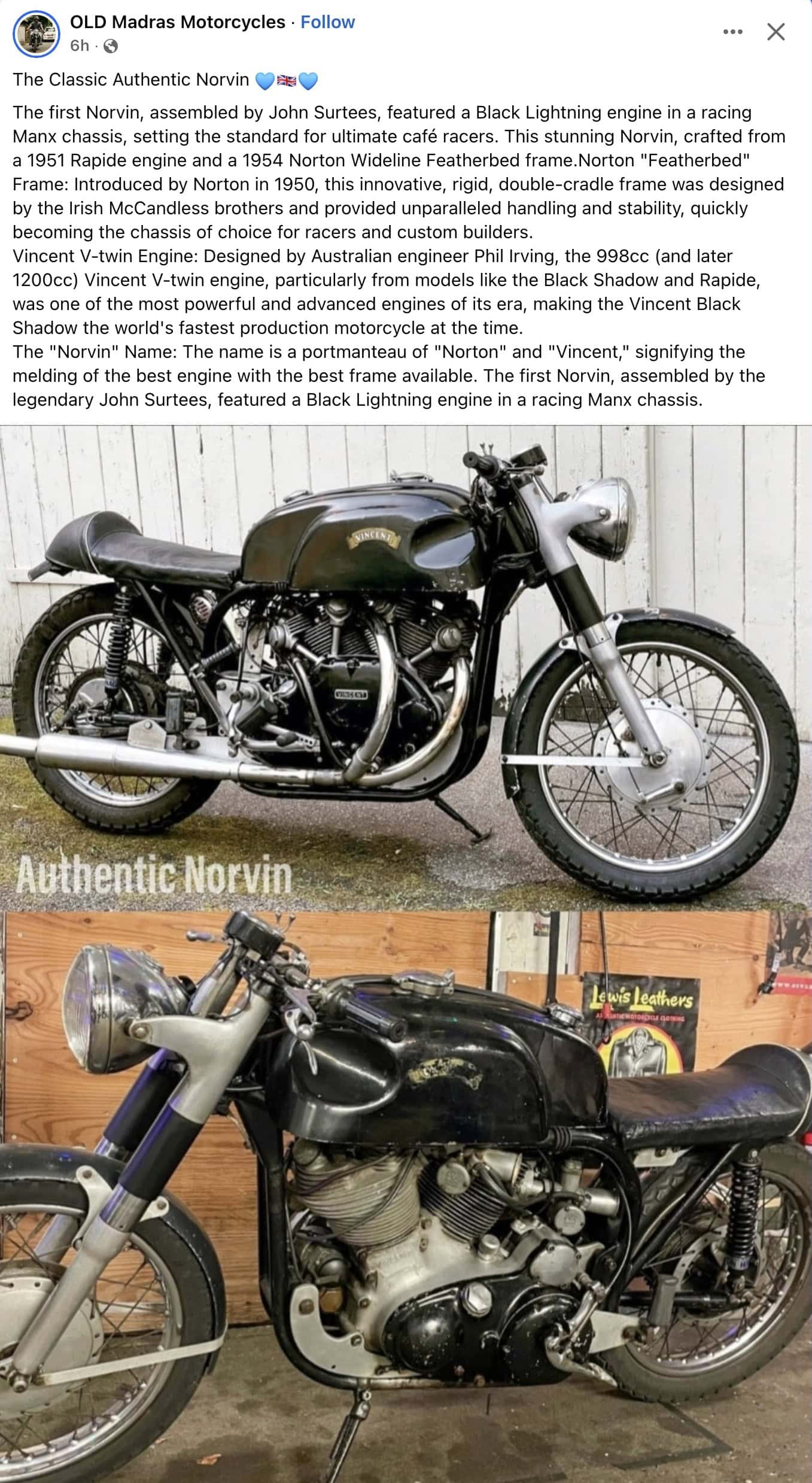 1951 and 1954 NORVIN motorcycle FB
