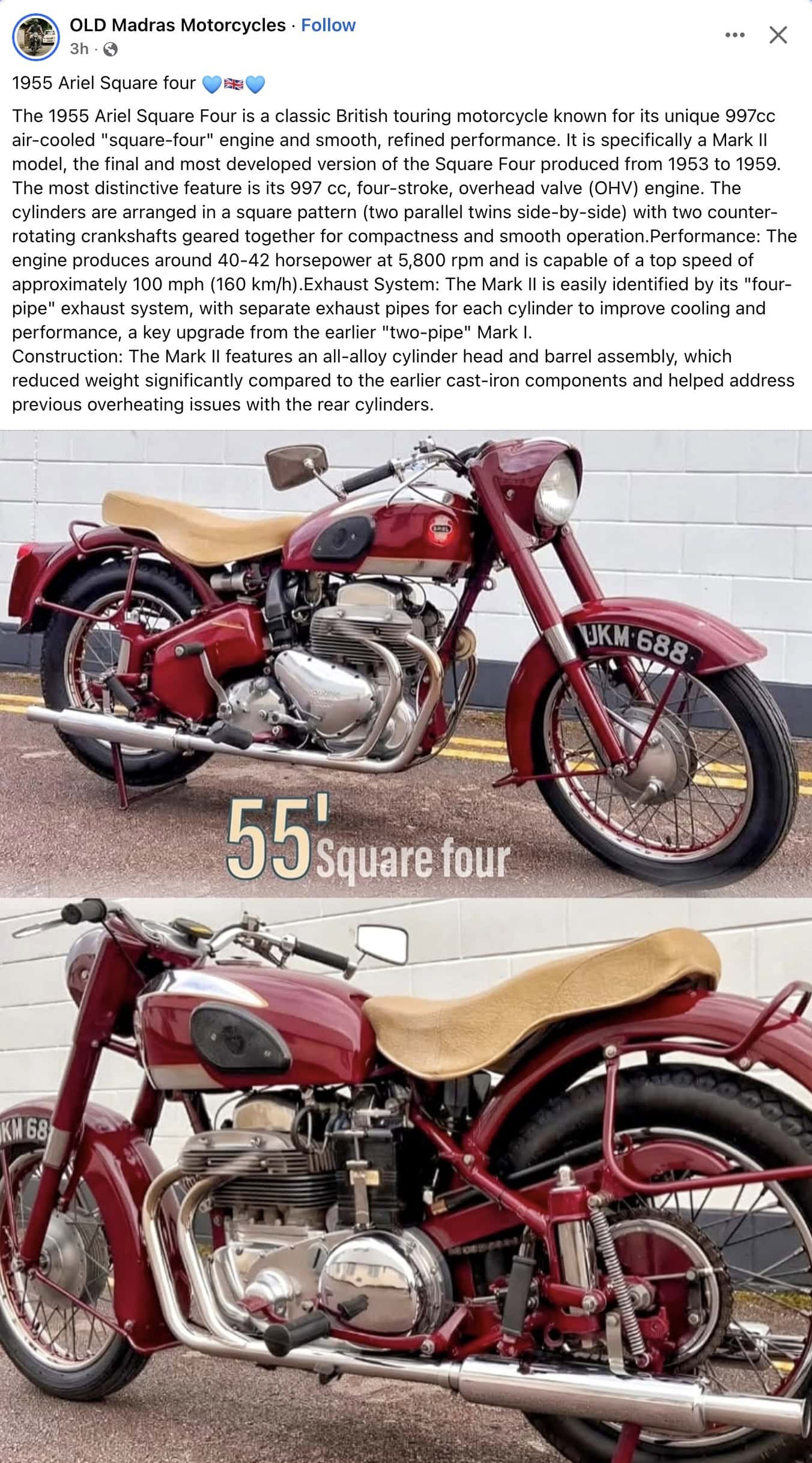1955 SRIEL Square Four motorcycle FB