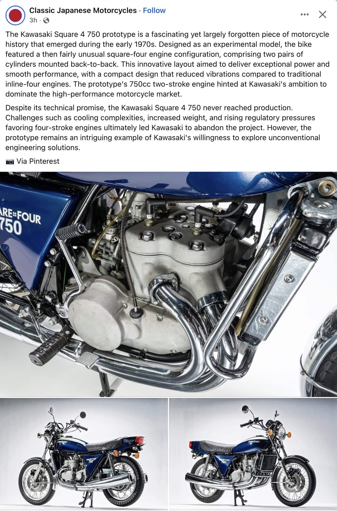 1973 ca. KAWASAKI Square 4 750 motorcycle prototype FB