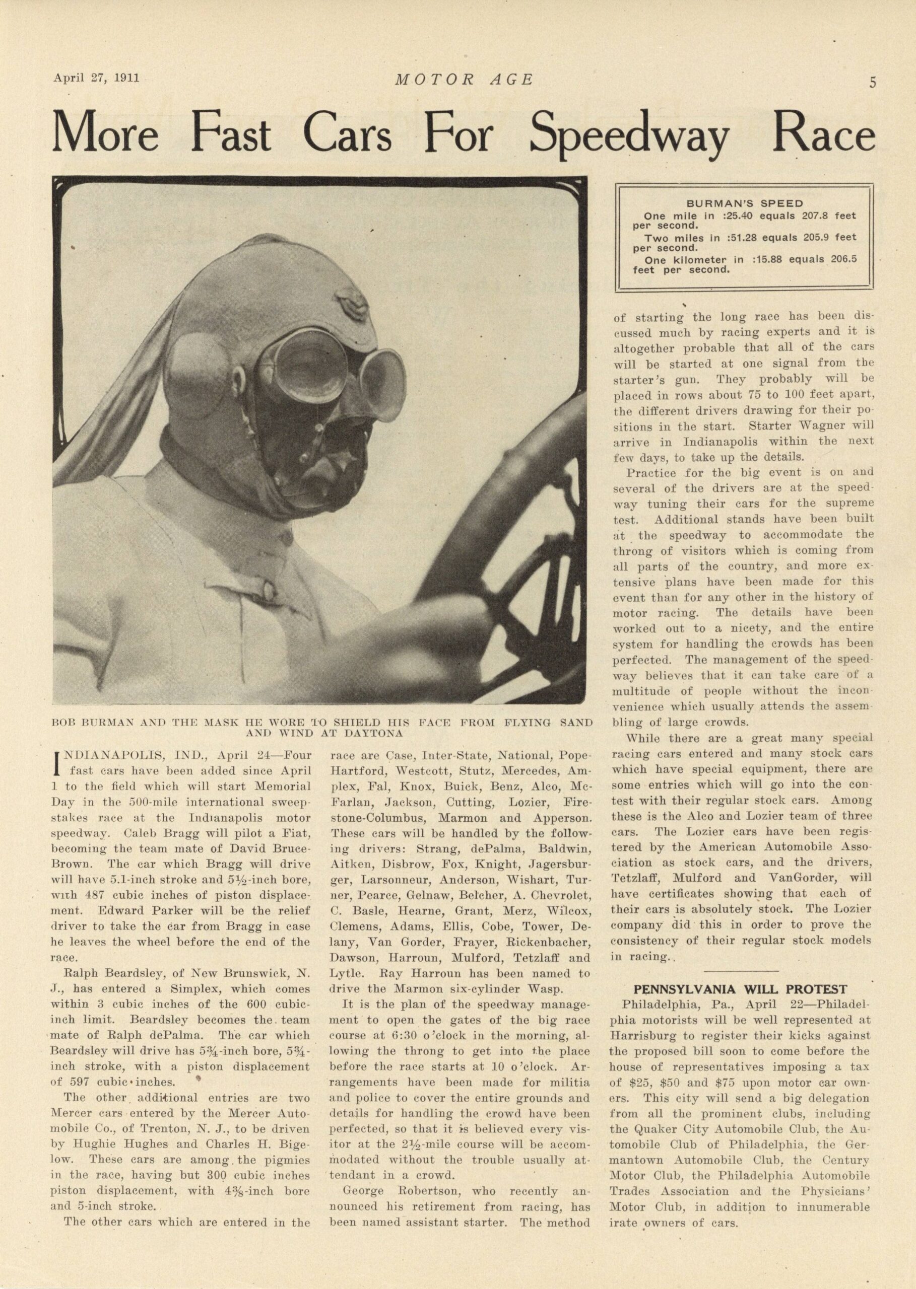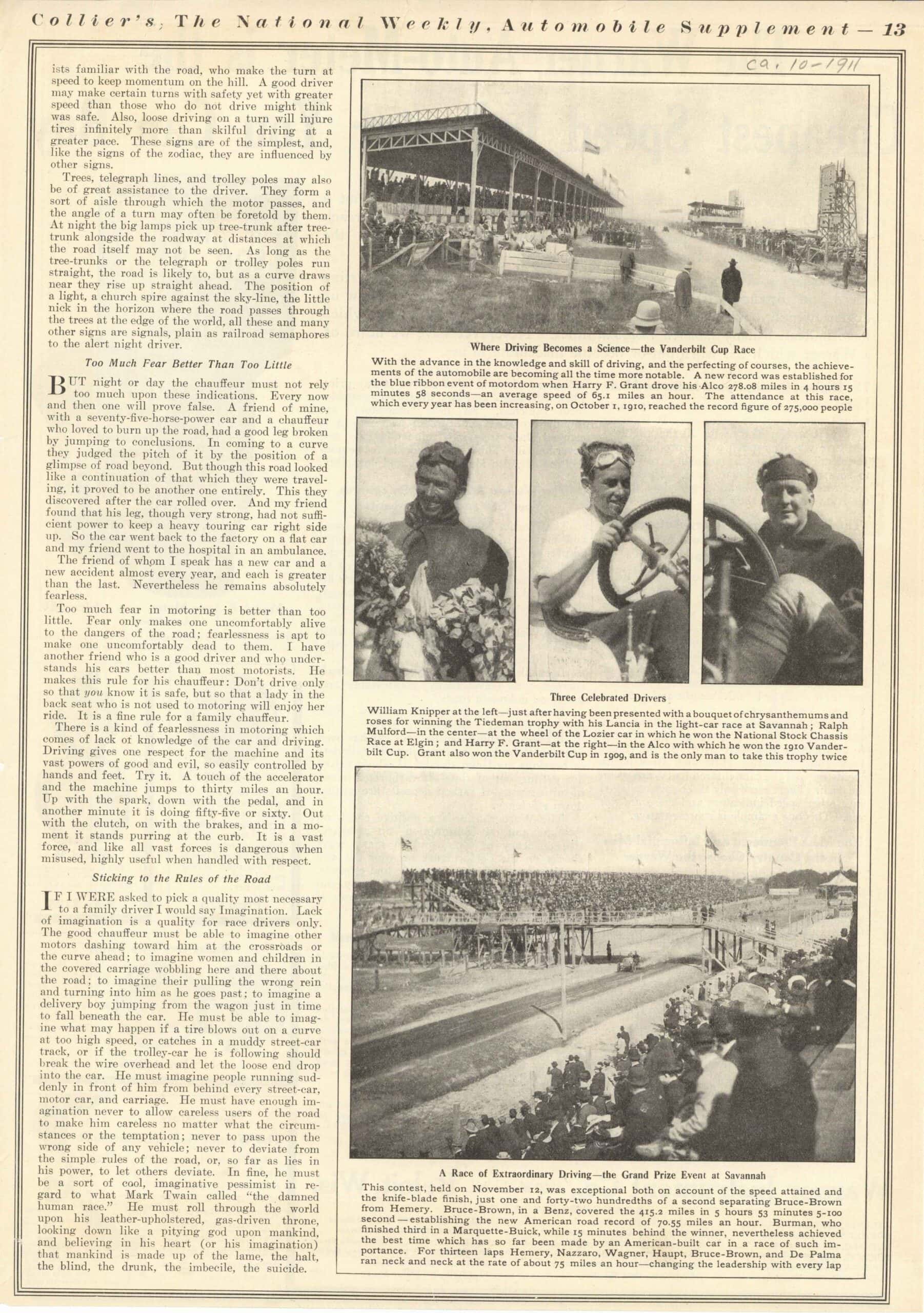 1911 9 27 Sport and Contests Burman Breaks Another Oldfield Record THE HORSELESS AGE 9″×12″ page 477