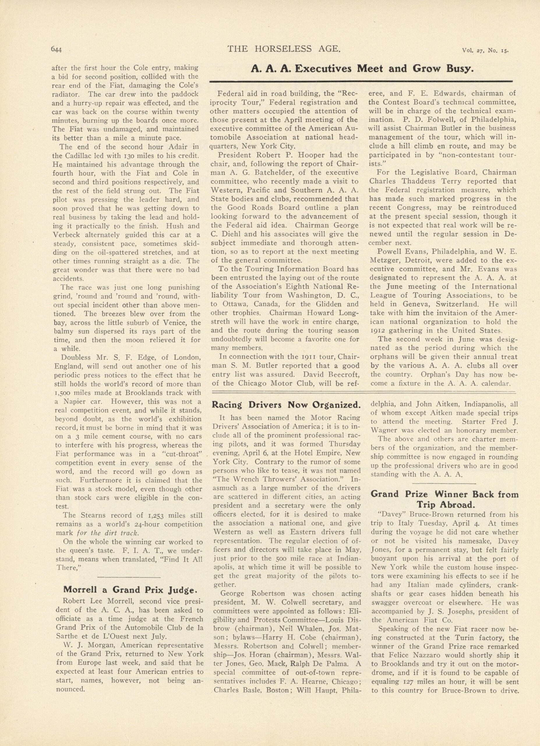 1911 12 7 Fiat, Bruce-Brown Wins Grand Prize THE AUTOMOBILE