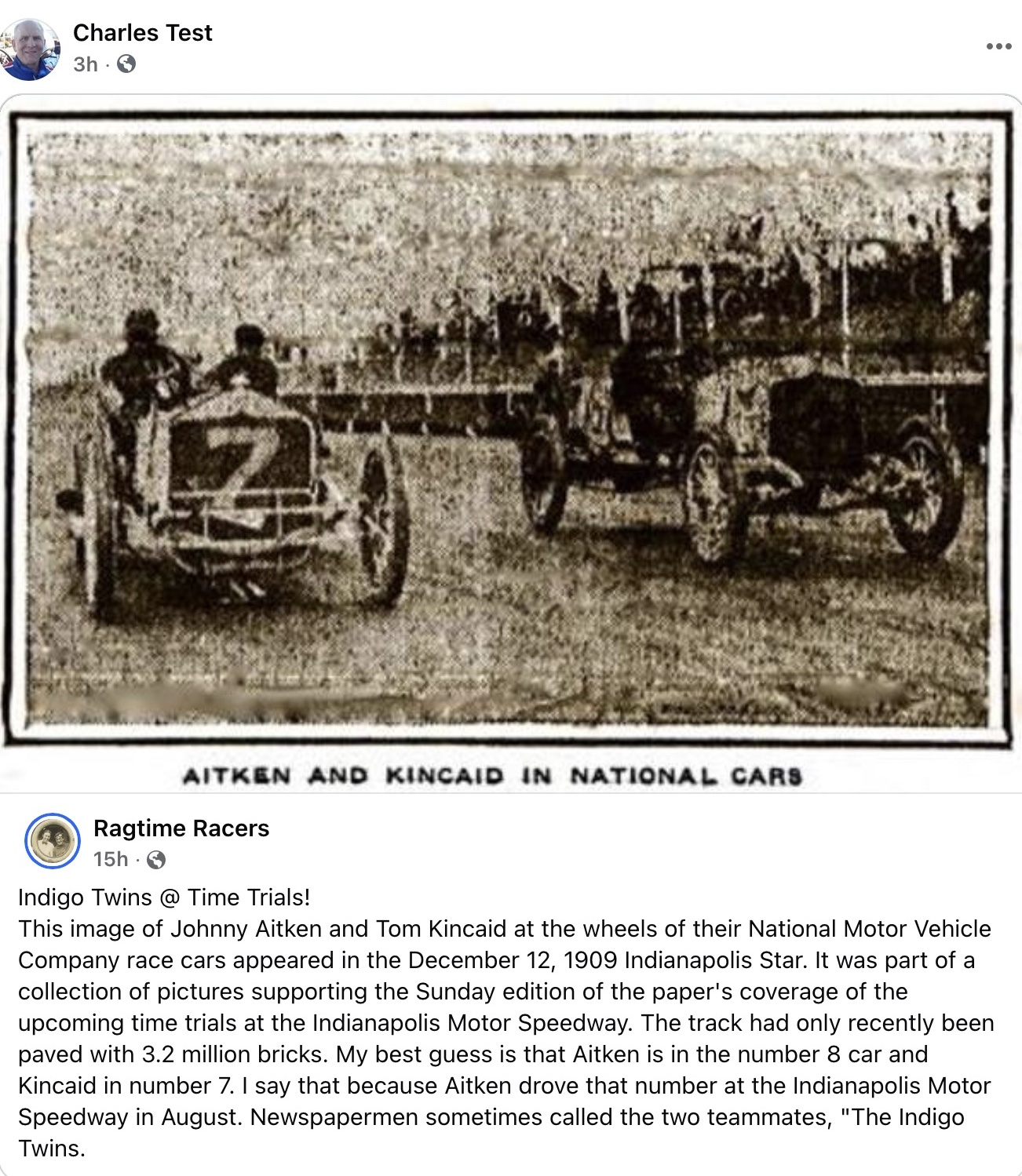 1909 Indy 500 Indiana Racing Ira Cobe FB