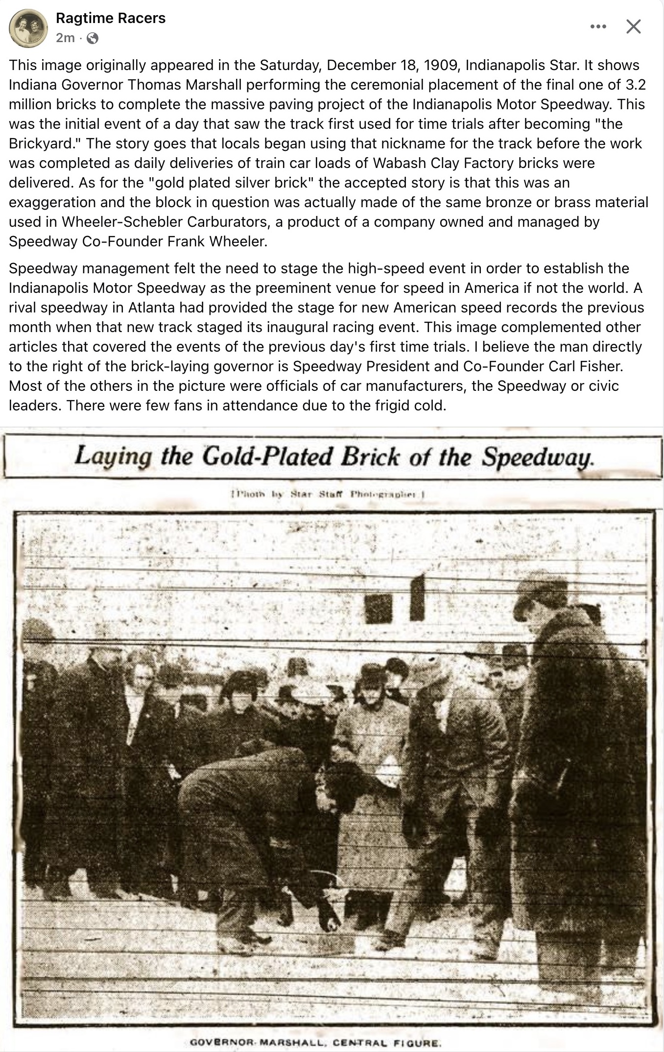 1909 12 18 Indianapolis, IN Speedway Laying gold brick FB
