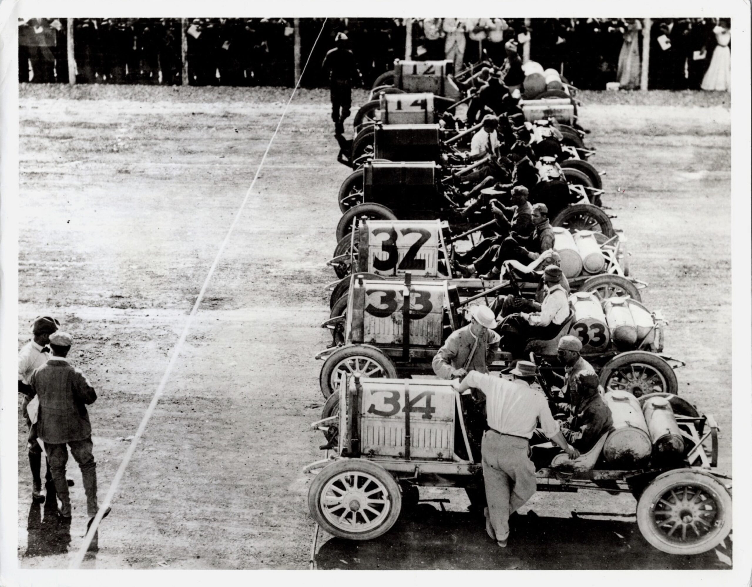 1909-1910 Indy 500 1909 race car lineup front screenshot