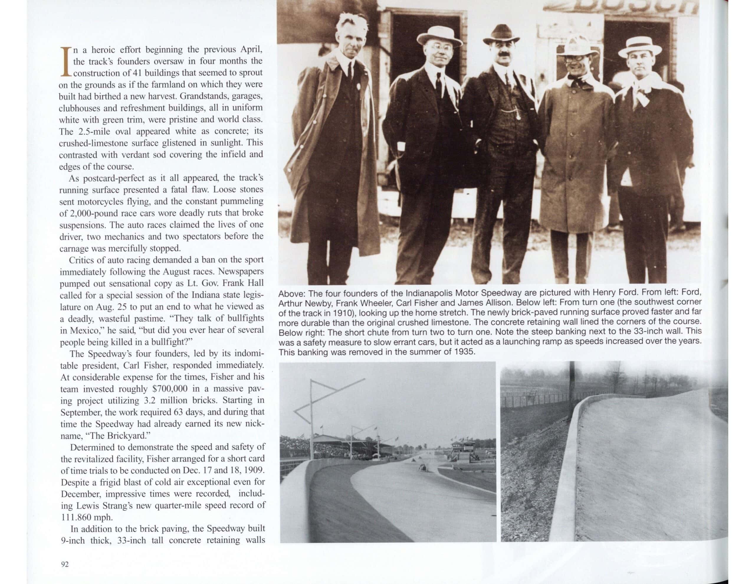 1910 DEBUT OF THE BRICKYARD 1910 By Mark Dill article AUTOMOBILE Quarterly No. 1 2010 10.25″×8.25″ page 93