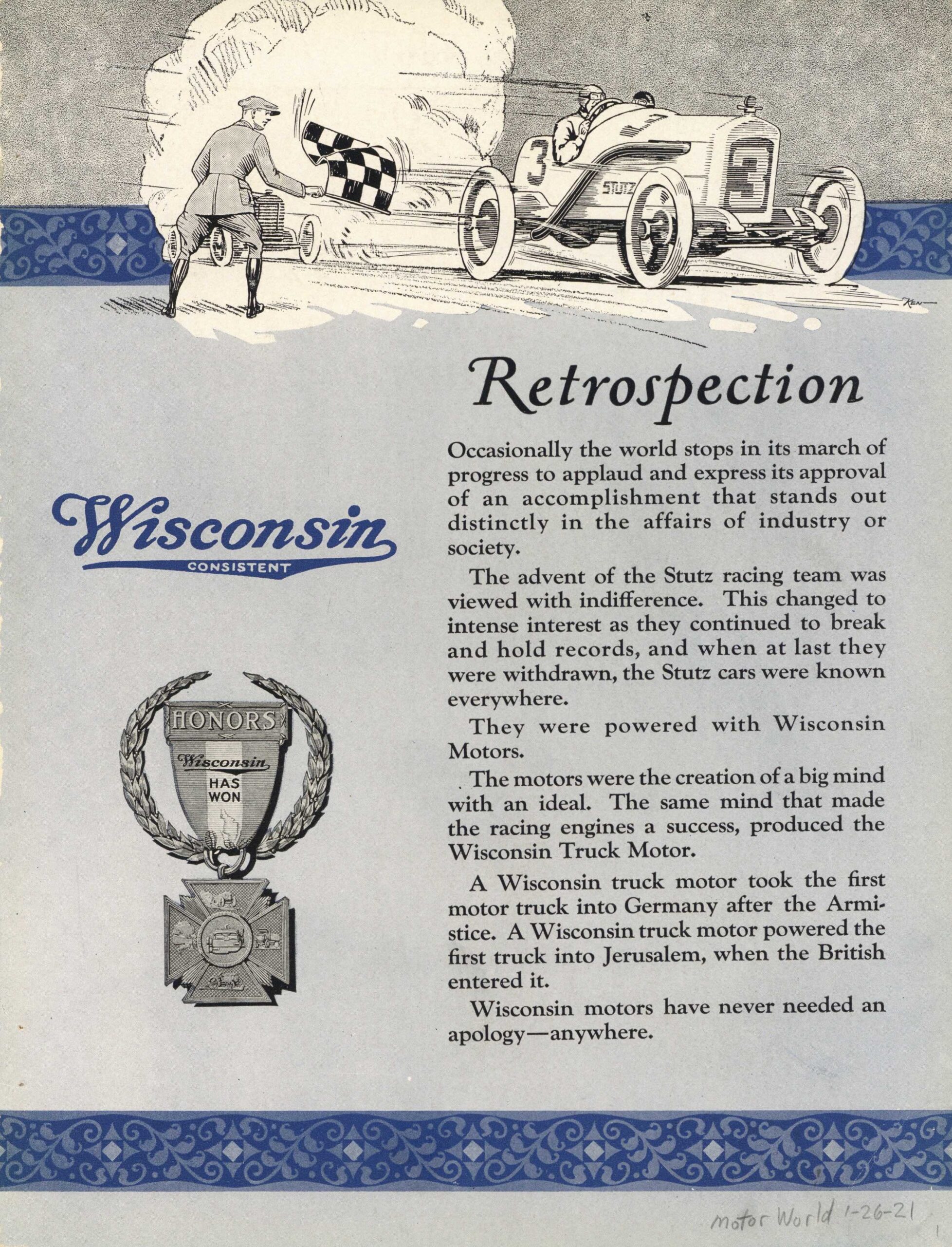 1921 1 26 Wisconsin Motor Retrospection MOTOR WORLD 8.75″×11.5 “page 1