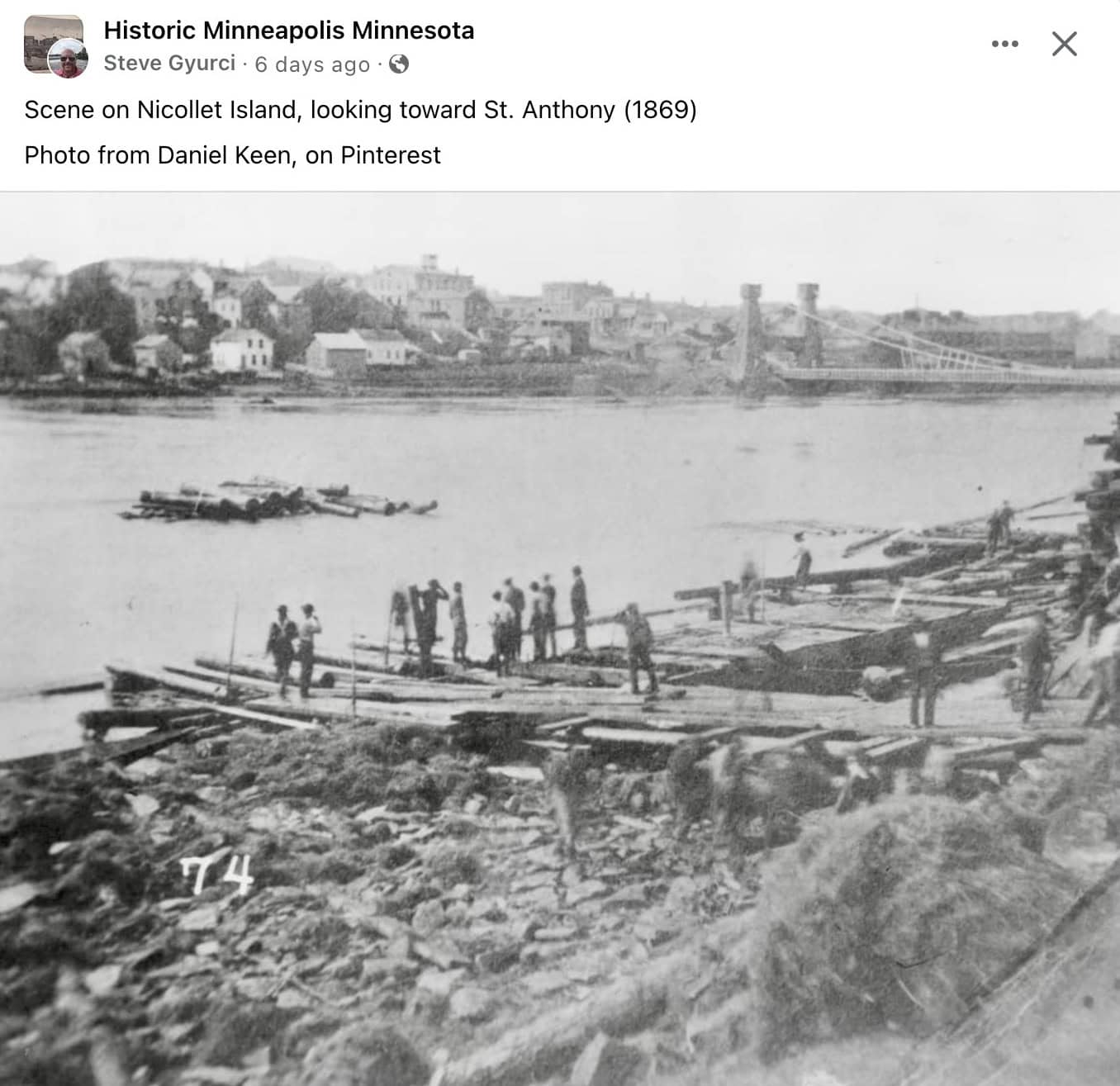 1869 Minneapolis MN Scene on Nicollet Island FB