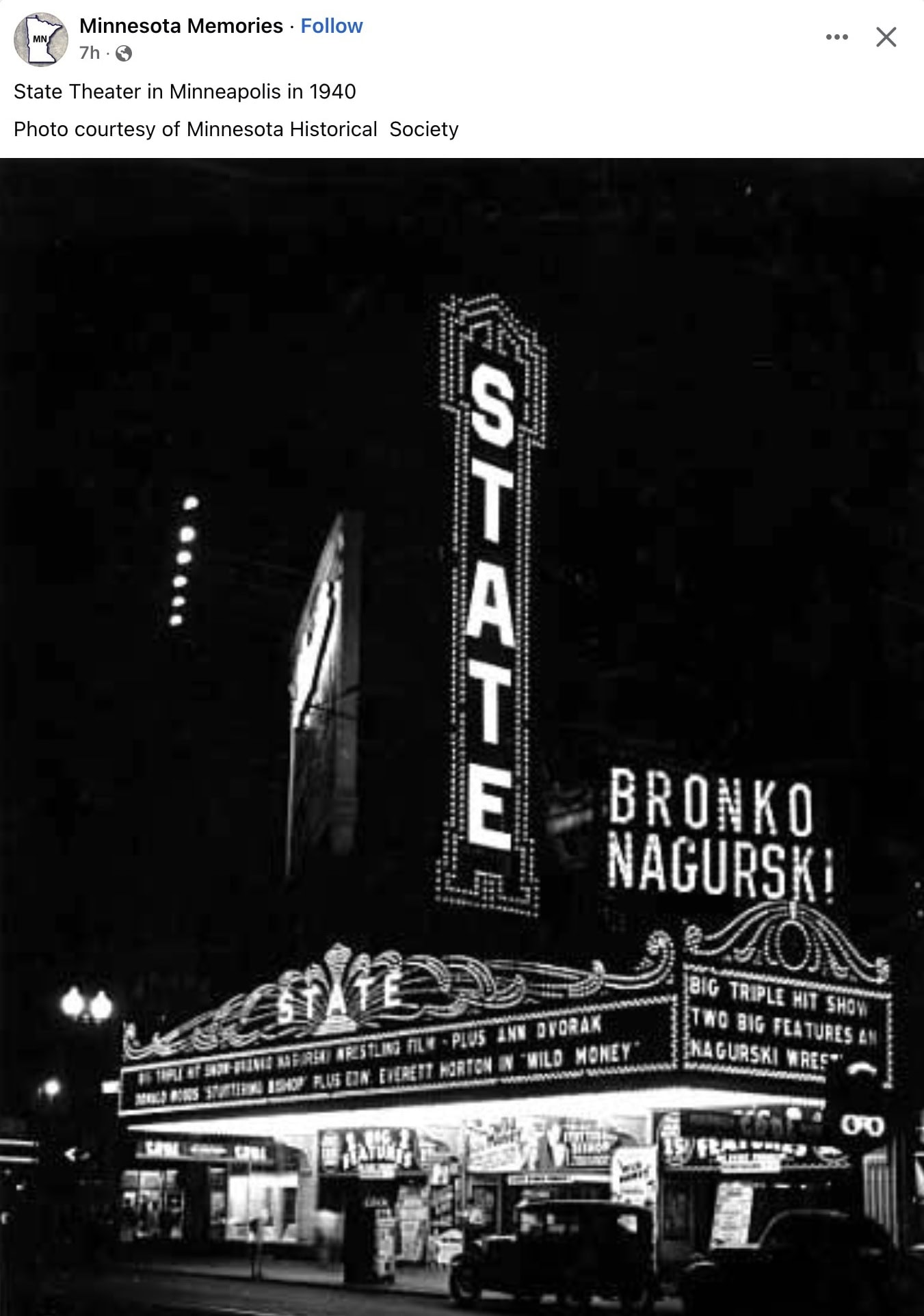 1940 Minneapolis, MN State Theater at night FB