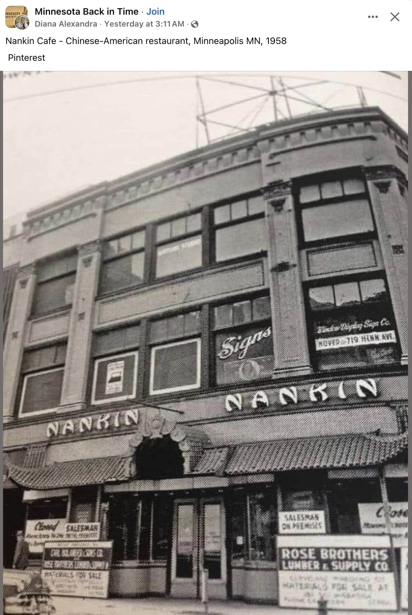 1958 Minneapolis, MN Nankin Cafe FB