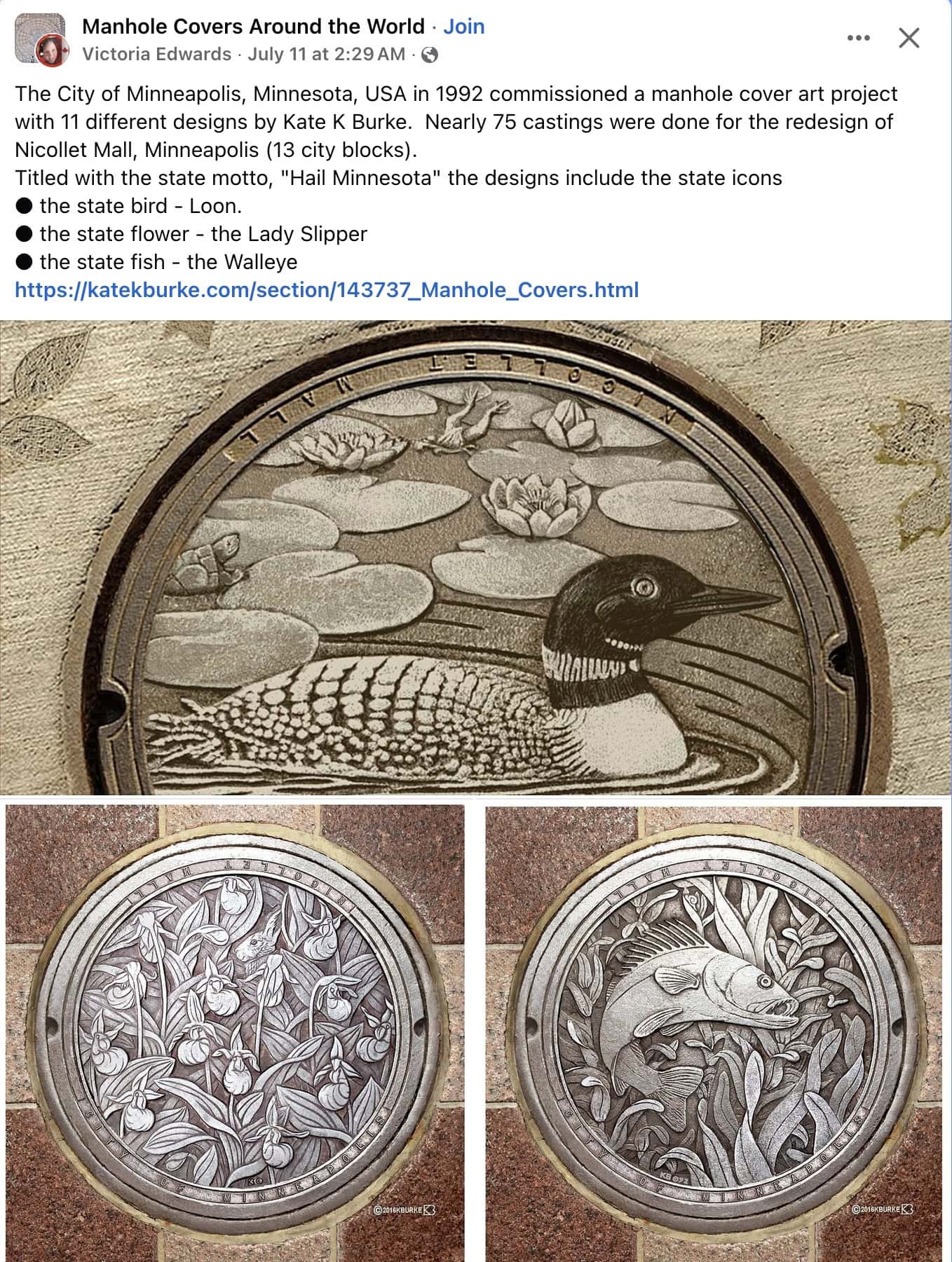 1992 Minneapolis, MN Designer manhole covers FB