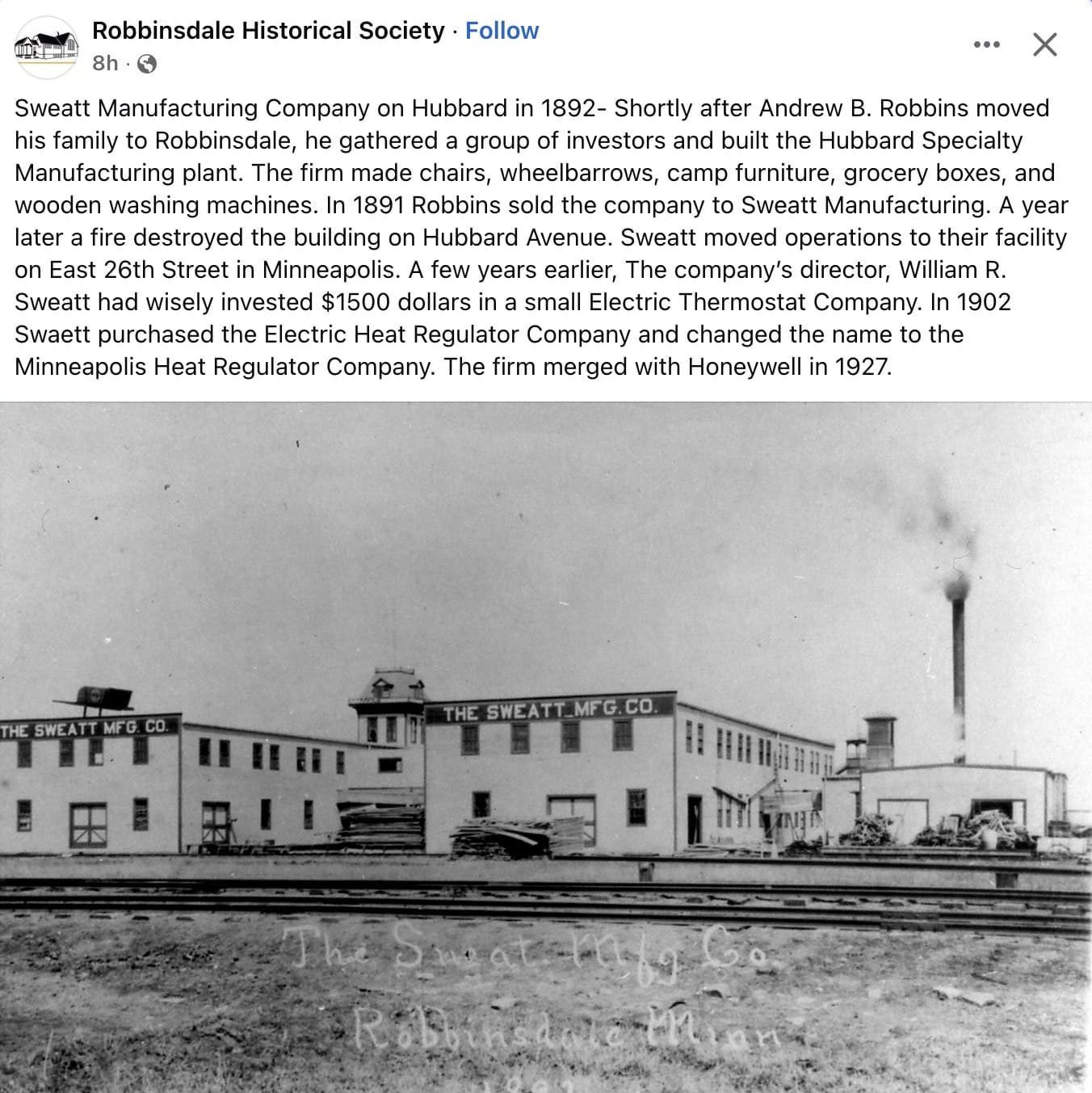 1892 Robbinsdale, MN Sweatt Manufacturing Company FB