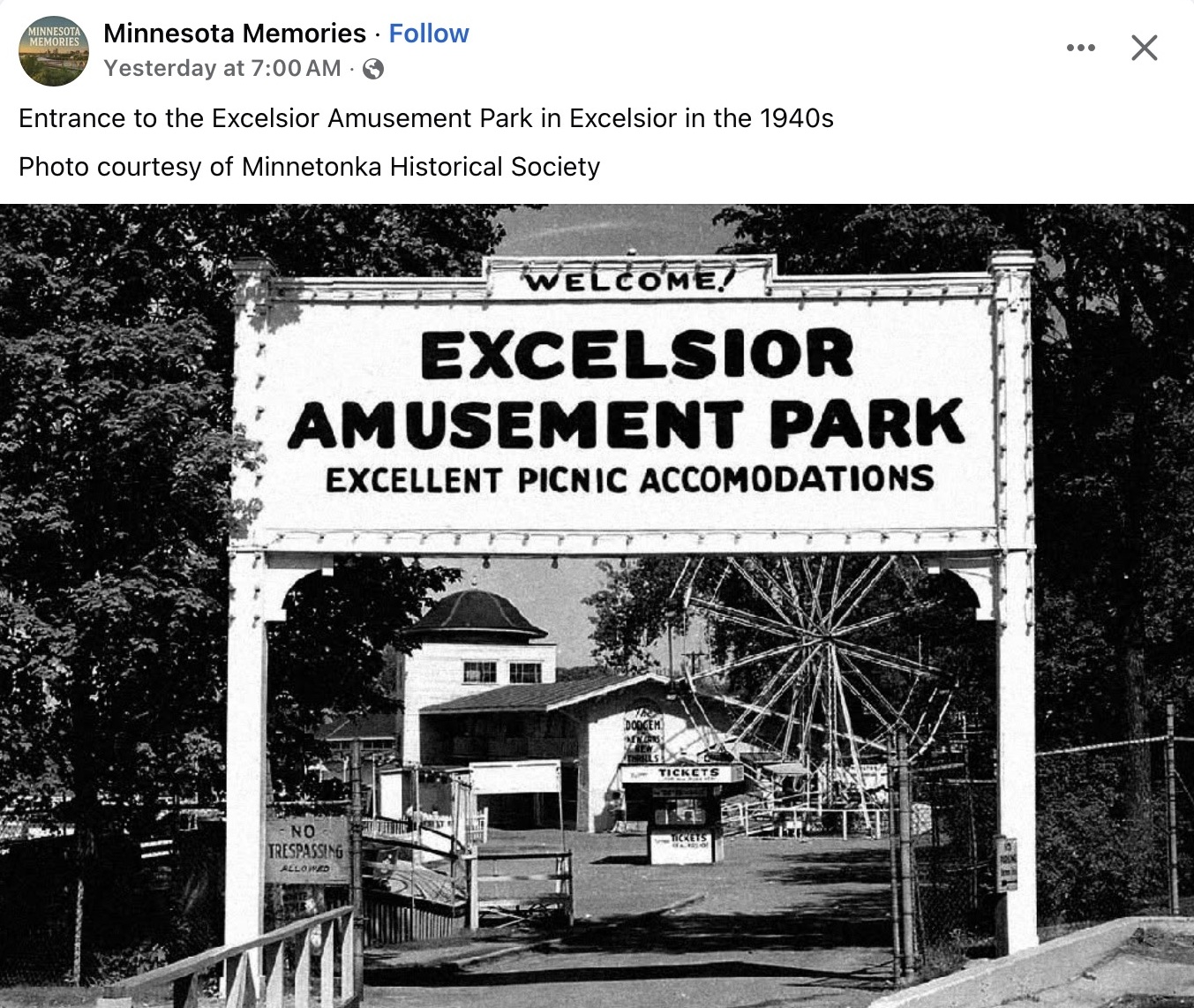 1940s Minnetonka, MN Excelsior Amusement Park entrance FB