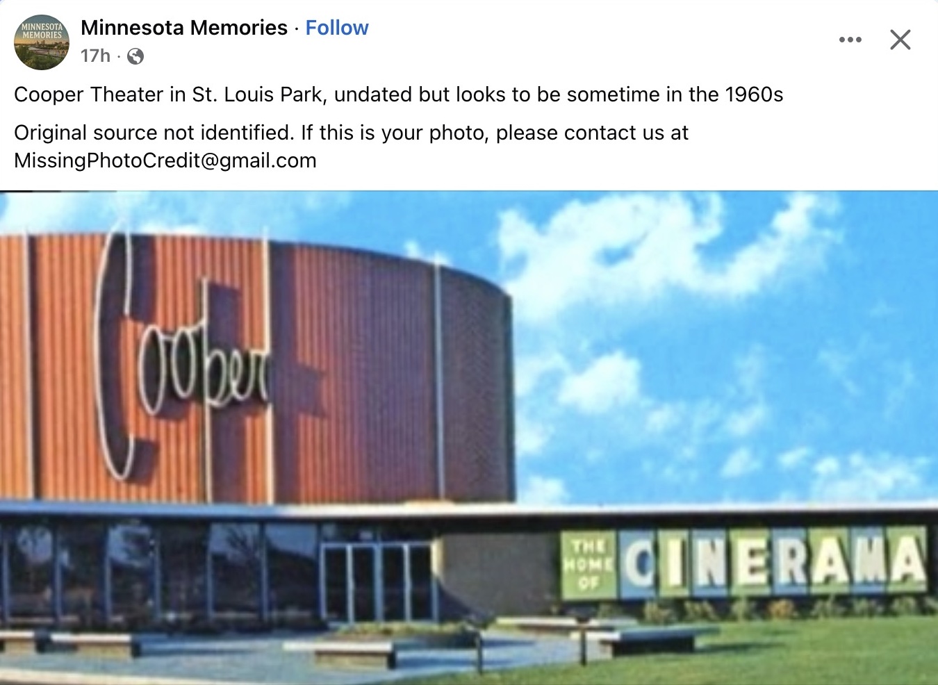 1960s St. Louis Park, MN Cooper Theater FB