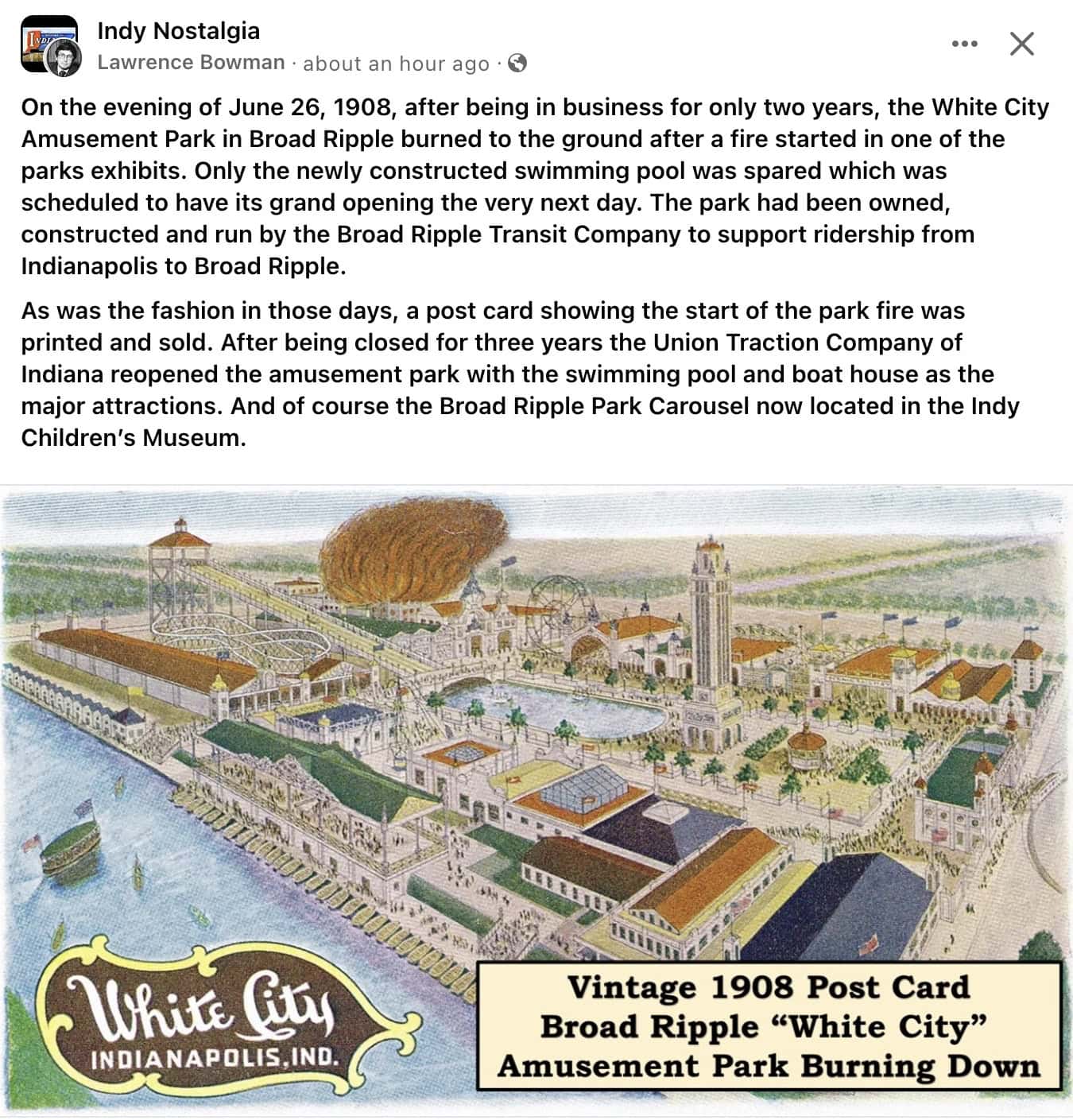 1908 Indianapolis IND Broad Ripple Great White Way FB