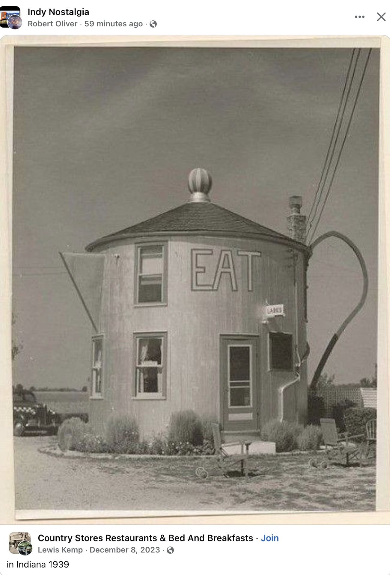 1939 Indiana Cool roadside tea pot diner FB